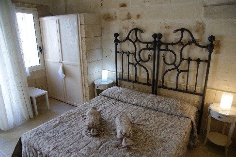 Alcune delle camere di OtrantoCasa, sono realizzate con pietra leccese a vista e soffitto con volta a stella, che richiamano la tradizionale architettura salentina. La volta a stella, data l’assenza di intonaco, con i conci di pietra a vista, presenta delle eleganti sfumature color miele: tale tecnica costruttiva permette di ammirare le linee costruttive, la disposizione dei mattoni e le infinite sfumature di colore tipiche delle pietre salentine, dal tenue color miele al dorato.